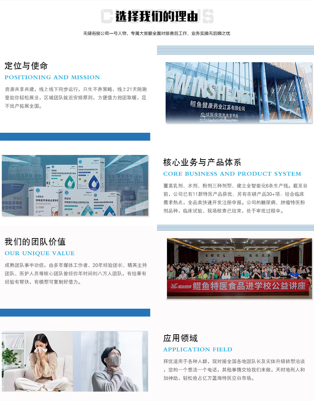 鲲鱼健康药业江苏有限公司成立于2017年6月,总投资10亿元。覆盖乳剂、水剂、粉剂三种剂型、建立全智能化6条生产线。截至目前,公司已有11款特医产品获批;另有在研产品30+项:结合临床需求热点,全品类快速开发注册申报。公司的糖尿病、肿瘤特医粉剂品种,临床试验、现场核查已结束,处于审批过程中。